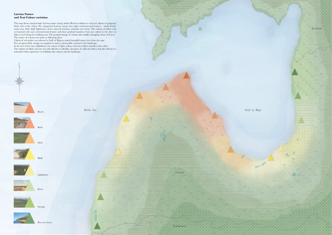 バルト海岸沿いのトレッキングルートに計画をするキャビンのグループコンペ案。